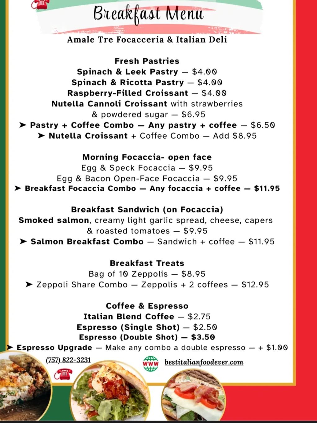 AmaleTrefocacceria@gmail.com Be Happy .. Eat Carbs Call or Text 757-822-3231